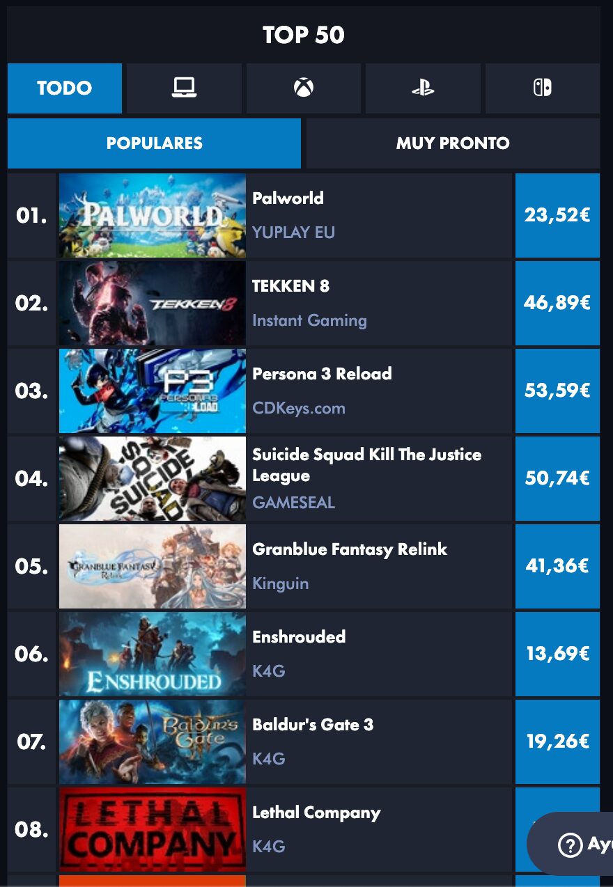 Como parte de nuestro compromiso con la personalización y las características fáciles de usar, hemos realizado mejoras significativas en la sección TOP 50. Ahora, usted tiene el poder de seleccionar «Todas las plataformas» o una plataforma específica para ver la lista de los TOP 50 juegos populares. Además, hemos mejorado la función «Próximamente», lo que le permite anticipar los próximos títulos más populares tanto para todas las plataformas como para una plataforma específica. Sus preferencias son importantes, y queremos adaptar su experiencia a sus necesidades de juego.