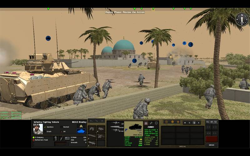 - Verdadera Guerra Táctica 3D: Comanda vehículos, equipos y escuadrones en un entorno 3D realista, desde el batallón hacia abajo.