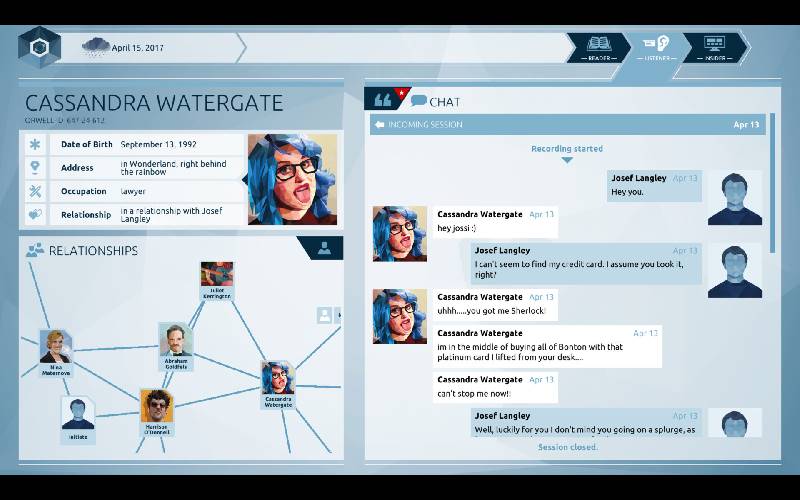 Juega como investigador para Orwell, un programa enfocado en encontrar amenazas en un mundo orientado a la seguridad. Investiga las vidas digitales de los ciudadanos y toma decisiones cruciales que dan forma al futuro de tu Nación.
