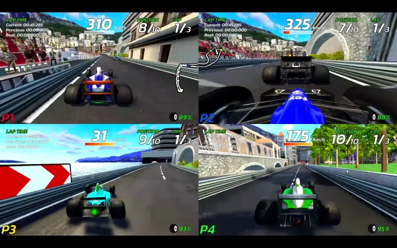 4PGP: Four-Player Grand Prix es un juego de carreras rápido y accesible, pensado para disfrutar en compañía. Súbete a coches de estilo fórmula y compite en circuitos de todo el mundo, en solitario o con amigos en multijugador a pantalla partida. Con varios niveles de dificultad, modo de asistencia y fluidez a 60FPS, 4PGP ofrece carreras emocionantes para todos.