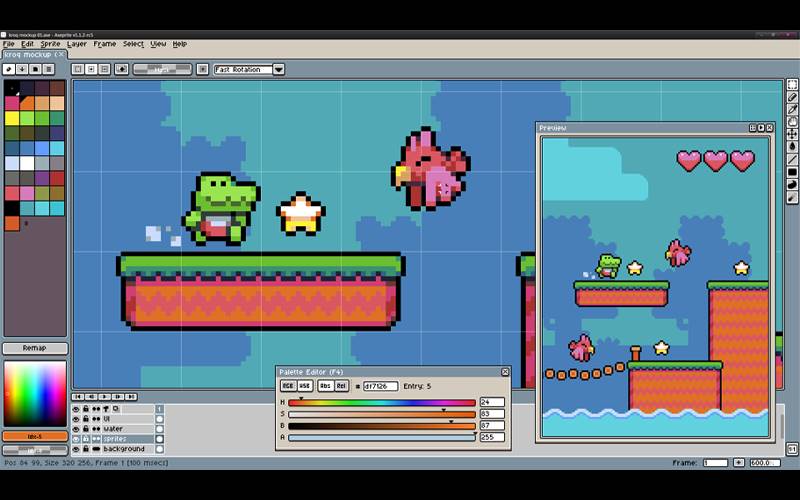 Crea animaciones profesionales de arte pixelado 2D con Aseprite, ideal para el desarrollo de videojuegos. Ofrece composición por capas, modos de color personalizables y herramientas avanzadas de animación, optimizando los flujos de trabajo para creadores.