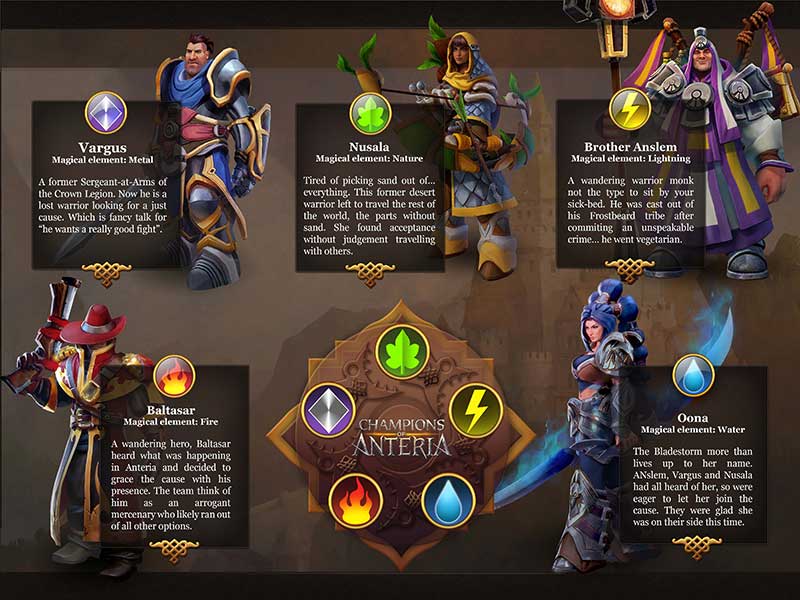 Jugaras con tres campeones de los cinco disponibles. Cada uno tiene sus habilidades propias y únicas. Debes averiguar la mejor combinación en función de la situación a la que te enfrentas. Si por casualidad cometes un error en la elección de tus campeones, puedes pausar el juego, cambiar es combinación y continuar sin problemas.