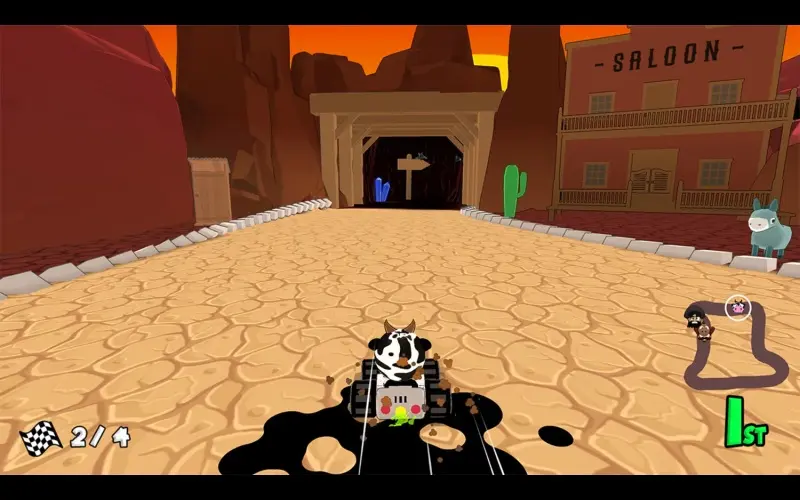 Caminos polvorientos aguardan a los corredores listos para saldar cuentas con velocidad. Evitan obstáculos mientras corren hacia la meta para reclamar la gloria. Adelántate y reta a tus amigos en circuitos con pantalla dividida.