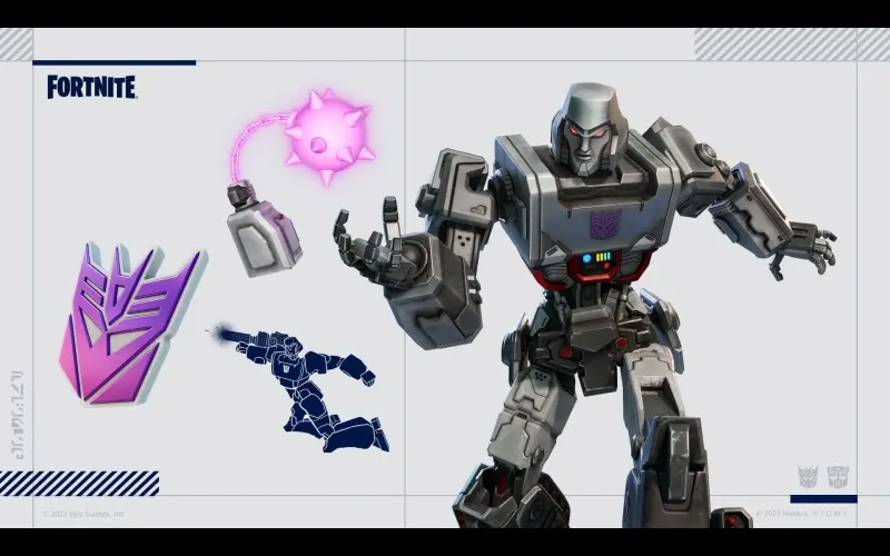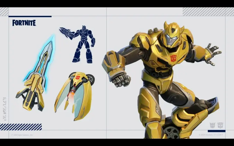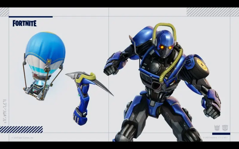 El paquete Fortnite Transformers contiene tres artículos cosméticos de la franquicia Transformers. Incluye 3 trajes, 3 accesorios para la espalda, 3 picos, 2 emoticonos y 1000 V-Bucks.