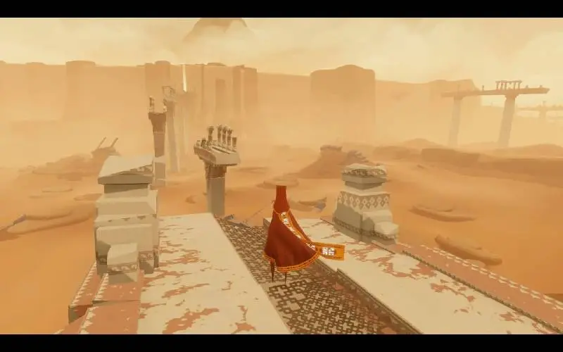 Una figura silenciosa cruza las arenas, atraída hacia un pico resplandeciente más allá del horizonte. A lo largo del camino, otros pueden unirse, pero las palabras no. Sólo la música te une mientras surcas las ruinas y despiertas telas olvidadas con cada nota, revelando secretos enterrados bajo el viento del desierto.