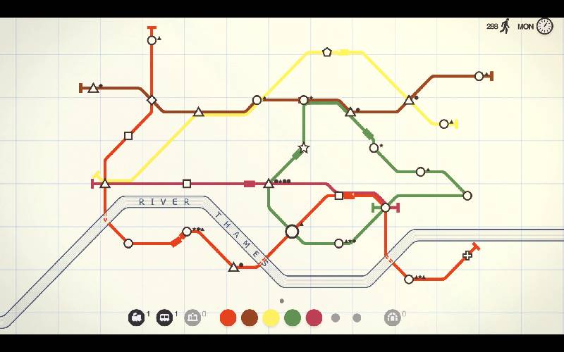 ¡Diseña redes de metro en Mini Metro! Planea y optimiza las rutas de trenes para una ciudad en crecimiento. Gestiona recursos y rediseña líneas a medida que surgen nuevas estaciones para mantener el flujo. El desafío es cuánto tiempo podrás mantener el transporte de la ciudad funcionando sin problemas.