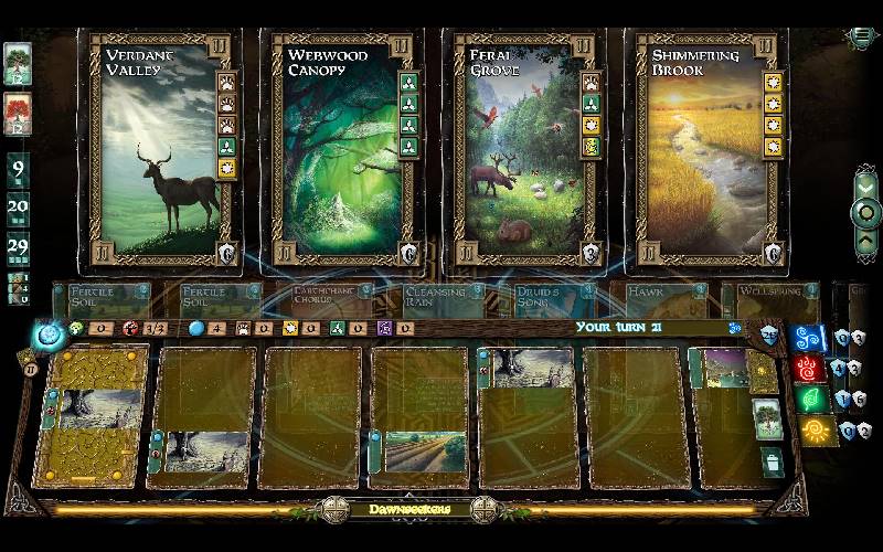 Sana el Valle como un clan druídico, restaurando el Valle de la Vida con bendiciones. Inspirado en el innovador sistema de creación de cartas de Mystic Vale, construye y mejora cartas para formar un mazo poderoso. Juega contra la IA o desafía a otros en partidas públicas o privadas, apto para todos los niveles de habilidad.