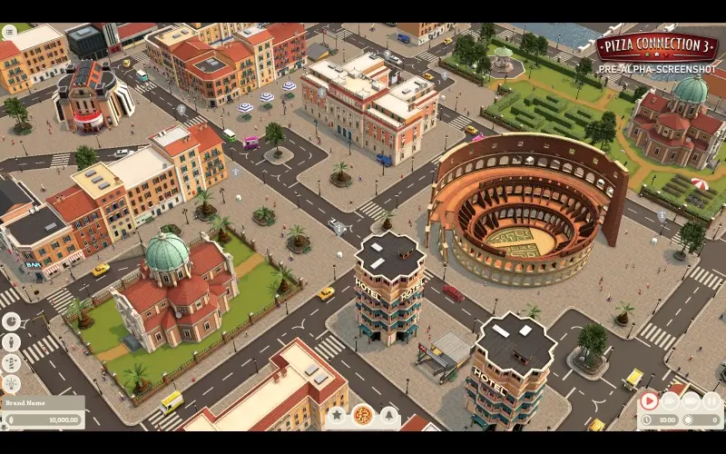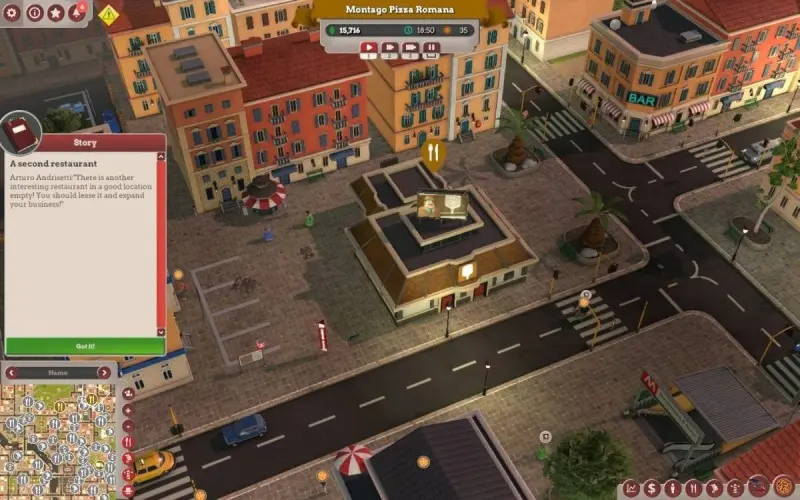 • Construye tu imperio pizzero en grandes ciudades, diseñando restaurantes con planos personalizados, personal y decoración.