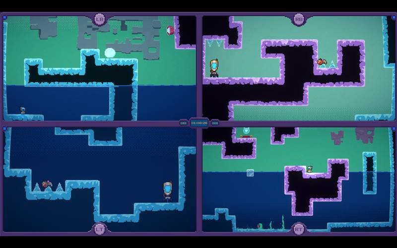 • El encanto retro de Quadroids con gráficos de píxeles crea un mundo visualmente atractivo. Su innovadora jugabilidad en pantalla dividida ofrece un desafío fresco.