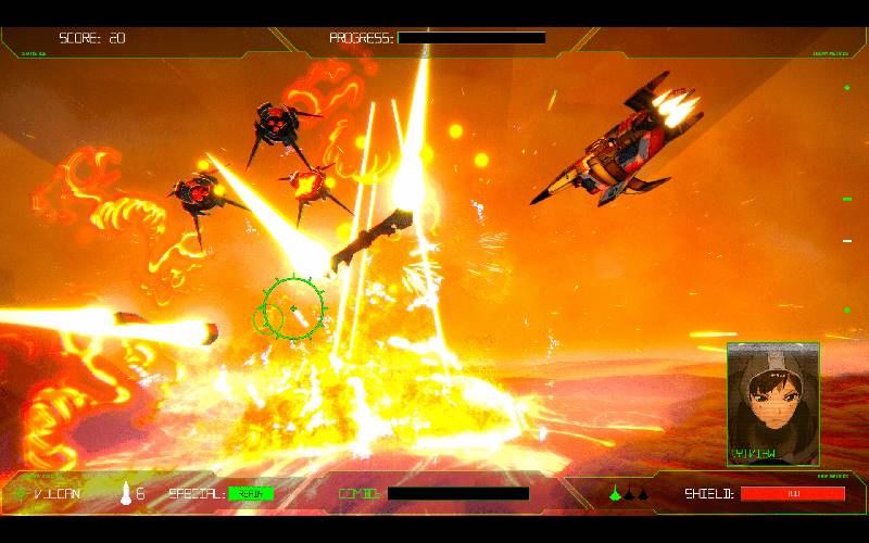 Toma el control de una nave espacial personalizable en este acelerado shooter espacial de estilo retro, luchando a través de nueve etapas para derrotar a ARGUS y poner fin a su control sobre la Fuerza de Defensa Solar.
