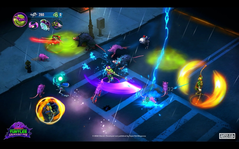 Salva a Splinter del Clan del Pie en «Teenage Mutant Ninja Turtles: Destino Fragmentado», una búsqueda rápida y llena de acción con combates y mejoras aleatorias mientras exploras las calles de la ciudad de Nueva York.