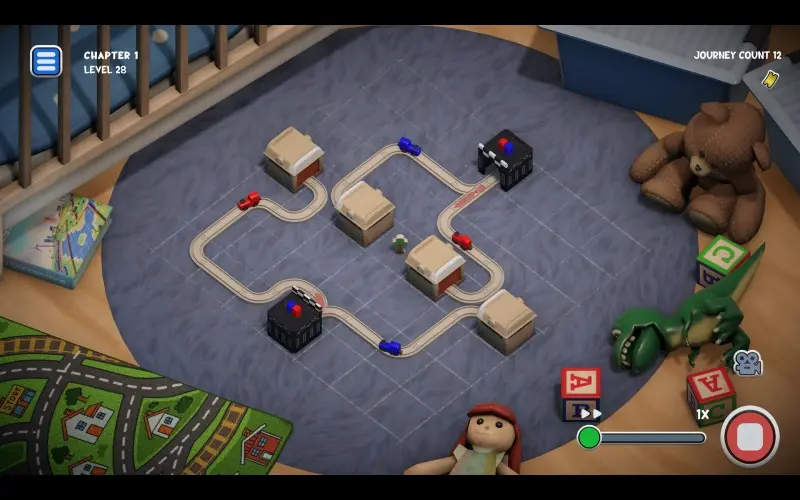 Teeny Tiny Trains es un juego de puzles con temática de juguetes desarrollado por Short Circuit Studios. Construye vías para guiar trenes en miniatura a través de retos casuales y breves, y recorre entornos nostálgicos como salones, fortalezas de sofás, áticos y mantas de picnic, todos ellos cuidadosamente diseñados como acogedores dioramas llenos de encanto nostálgico.