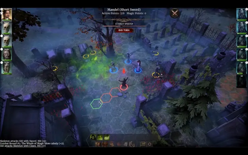 • Combate táctico por turnos con siervos no muertos.