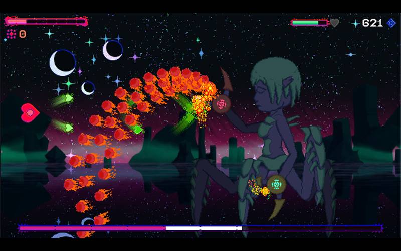 The Void Rains Upon Her Heart es un juego de tipo bullet hell shoot ‘em up boss rush desarrollado por Veyeral Games. Ayuda al corazón de una chica alien atrapada en una cueva rodeada de monstruos extraños. Aunque ella no puede luchar contra estos monstruos, puede hacerse amiga de ellos con el poder del amor, pero cada uno de ellos reaccionará a su manera violenta, aunque incluso los más poderosos pueden ser influenciados por este poder supremo. ¿Podrá su amor crecer lo suficiente como para repeler el vacío mismo o su corazón será roto una vez más?