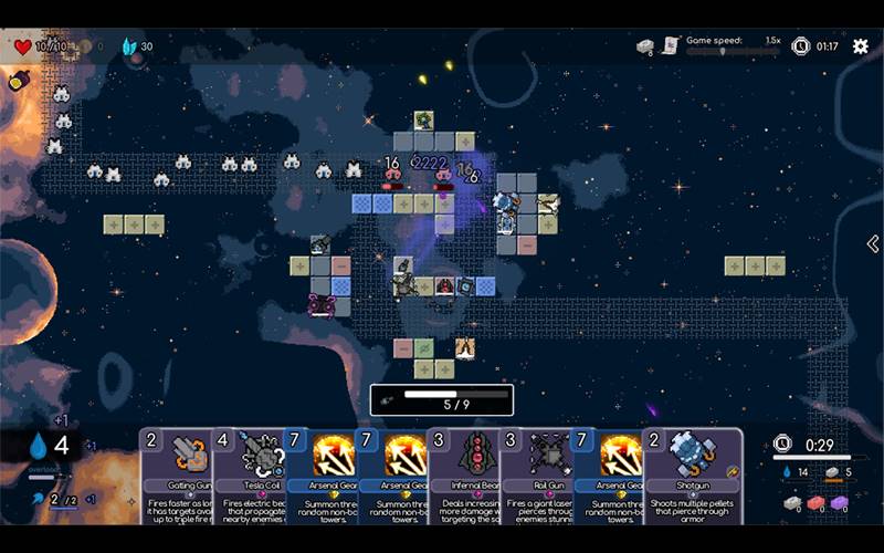 Tower Tactics: Liberation combina mecánicas de construcción de mazos y defensa de torres. Lucha contra la invasión de Salkoth usando torres, hechizos y objetos. Con mapas aleatorios y una variedad de cartas, cada juego ofrece un nuevo desafío estratégico.