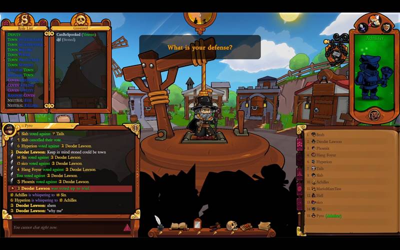 El Pueblo de Salem II es un juego multijugador de estrategia de deducción social de asesinato, engaño y supervivencia desarrollado por BlankMediaGames LLC, ambientado en el pintoresco pero traicionero pueblo de Salem, donde tendrás que usar estrategia, ingenio y habilidad para leer a los demás descubriendo la verdad antes de que sea demasiado tarde, ¿o será que tu astuto engaño los llevará por mal camino?