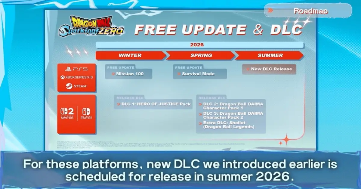 Arranque de año brutal para los fans de Dragon Ball Sparking Zero: Bandai ha publicado la hoja de ruta de 2026 mostrando 2 actualizaciones gratis y un DLC grande. Todo esto llegará desde hoy hasta algún momento del verano, lo cual son muy buenas noticias, ya que podría haber más contenido en la segunda mitad del año.