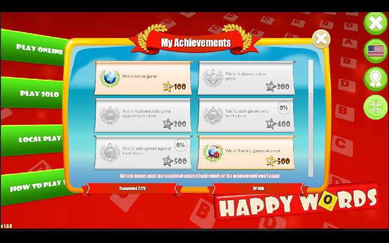 Happy Words es un juego de palabras en el que los jugadores tienen que formar palabras a partir de letras en una cuadrícula, intentando conseguir la mayor puntuación posible. Al igual que Wordle, se enfoca en formar palabras y pensar estratégicamente usando las letras disponibles.