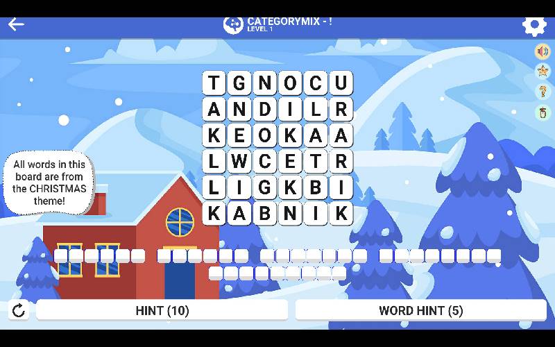 Square Word Hello Winter reta a los jugadores a formar palabras en una cuadrícula de letras con un tema invernal. Es similar a Wordle en que implica resolver rompecabezas de palabras usando las letras disponibles.