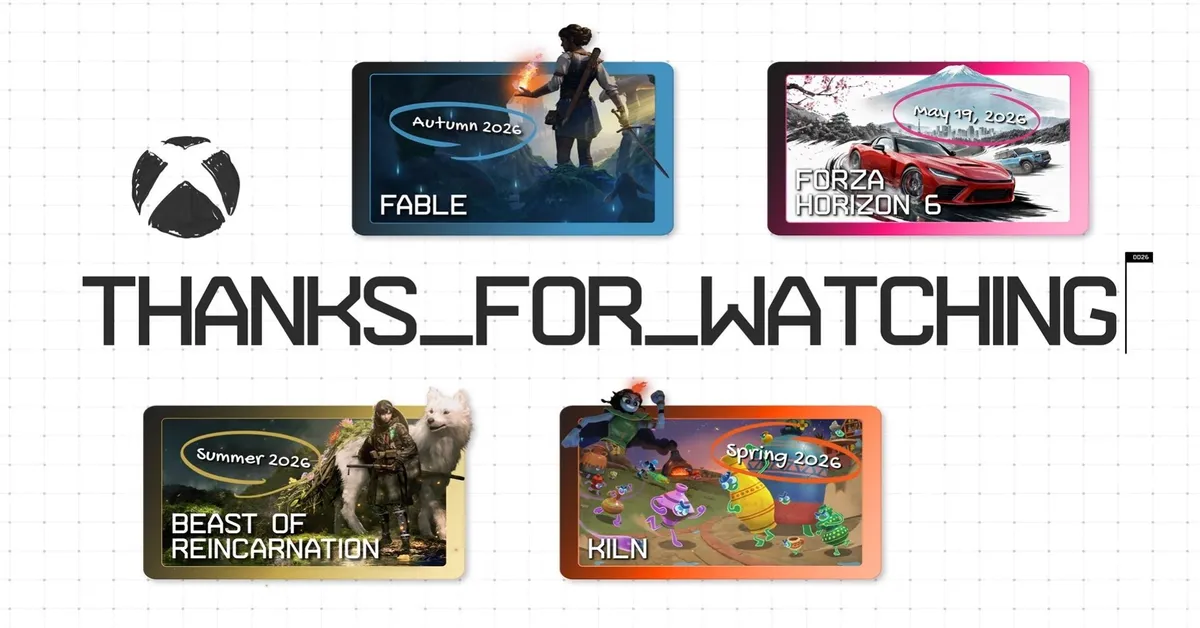 Resumen del Xbox Developer Direct 2026 con Forza Horizon 6, Beast of Reincarnation, Fable y el título sorpresa Kiln, incluyendo anuncios clave y fechas.
